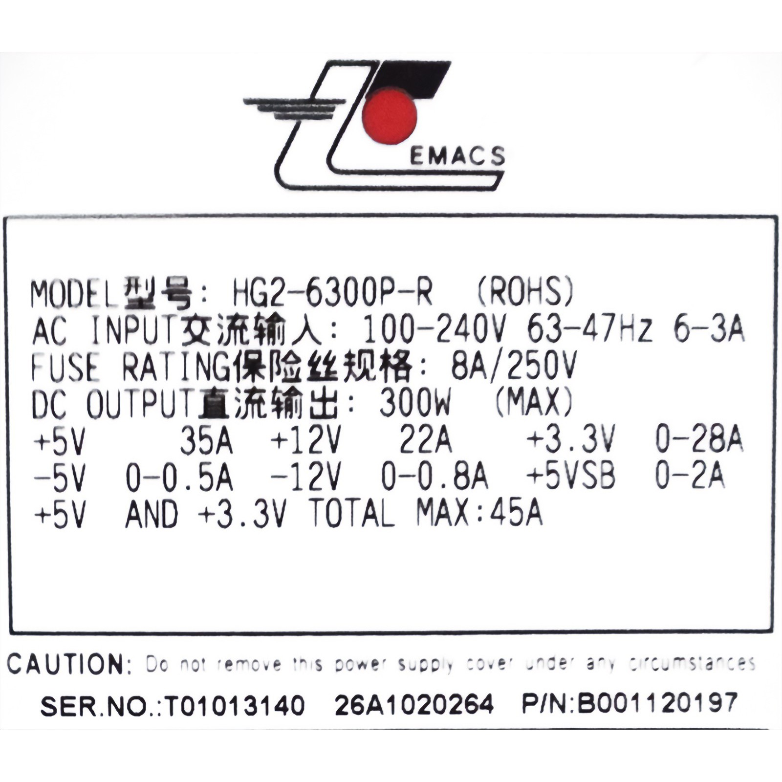 Zippy HG2-6300P-R B001120197 300w